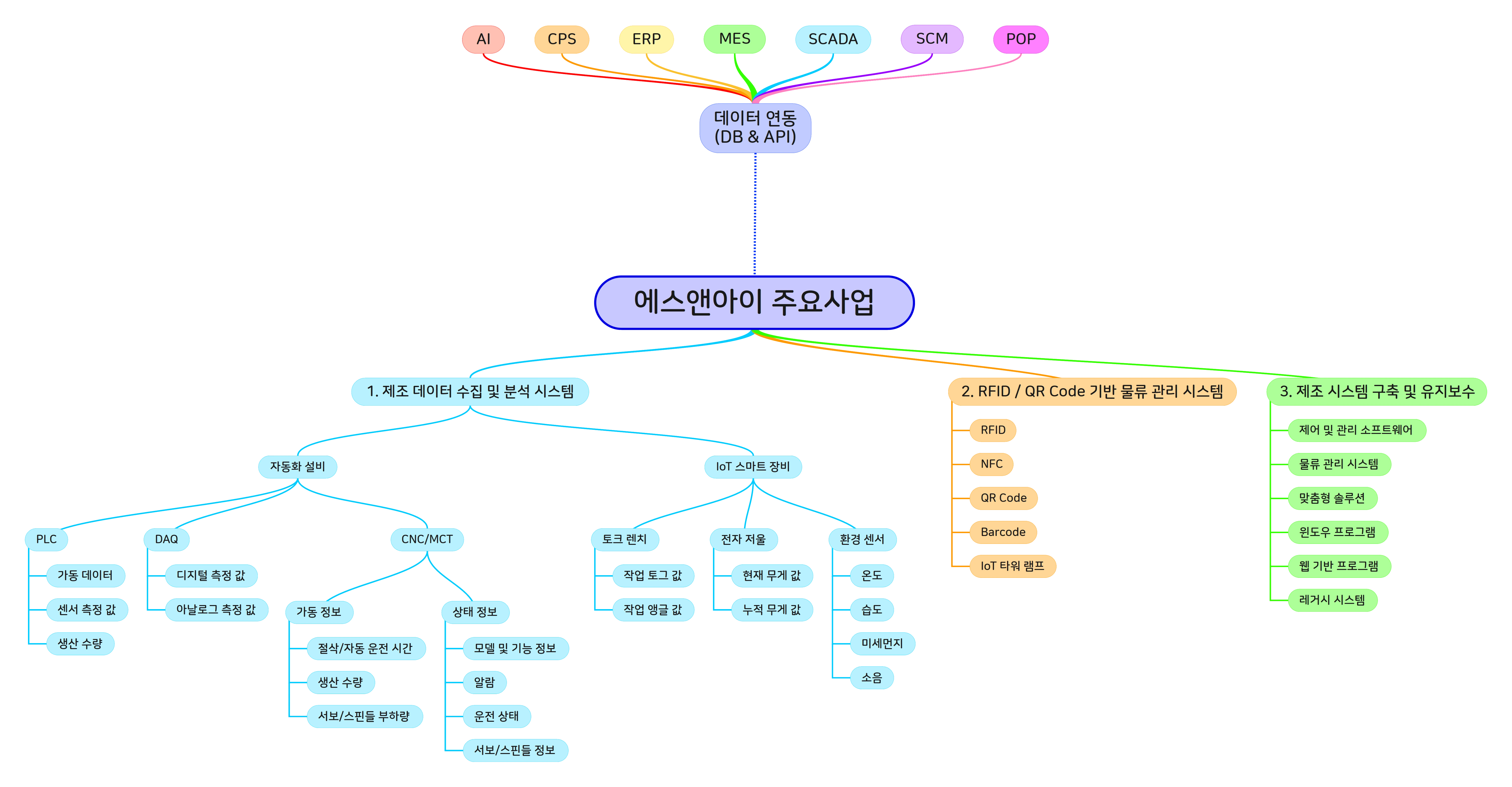 에스앤아이(주)는 2019년 7월 1일 창업하여 제조 데이터 수집 및 분석 시스템, RFID / QR Code 기반 물류 관리 시스템, 제조 시스템 구축과 유지보수 사업을 운영하는 회사입니다.